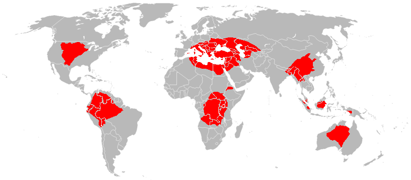 | R-1 | Південно-Східна Європа (раніше частина жовтої зони Y-1), Північне узбережжя Африки, Близький Схід |