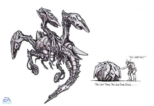 The game was to feature four factions - GDI, Nod, a CABAL faction and the Scrin. It is unknown if the Scrin were intended as a playable side, although concepts for a Scrin trooper exist.