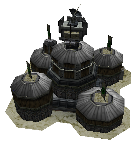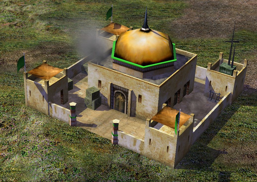 The GLA Command Center trained Workers and like all GLA buildings would leave behind a GLA Hole that could rebuild the Center if destroyed. GLA generals could fortify the building against enemy attacks with Fortified Structures upgrade, while Prince Kassad could also conceal the building with Camo-Netting as he learned to do with all GLA buildings. A Fake Command Center could also be built as a decoy.