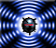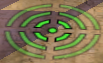 Small circle with a larger circle around it(x 4) and a cross through it (crosshairs with extra rings)