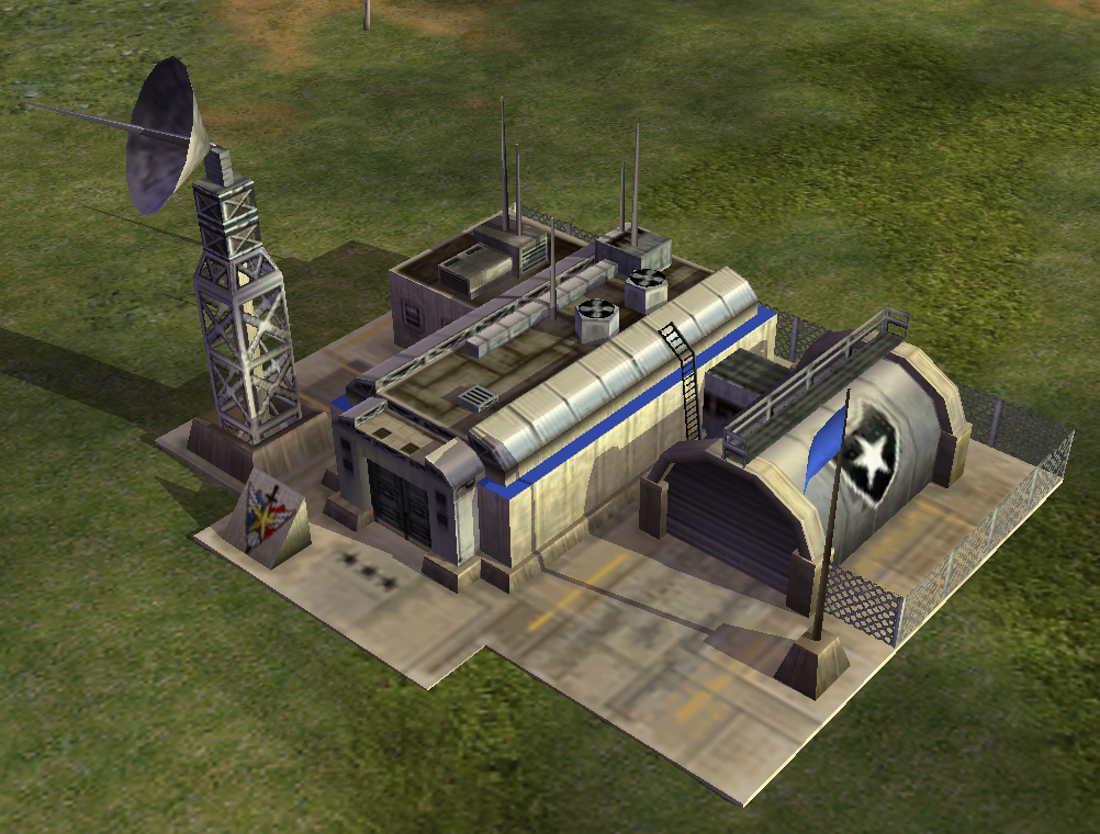 The American Command Center has an unused animation which shows the radar dish building up, like when the player purchased the radar upgrade. This is unused because America starts with radar at all times. However, the players may have been required to purchase the radar upgrade at some point in game development. Note also that in the Worldbuilder, the American Command Center appears without the radar dish, even though this is never seen in the game.