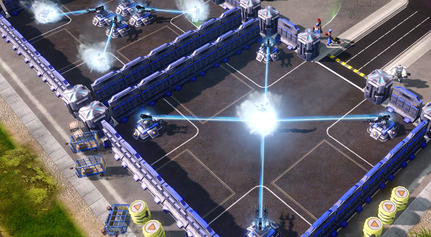 Most of the security personnel at the base are not Allied soldiers, but hired contractors from FutureTech. Several advanced FutureTech prototype weapons are also present at the base, including Cryo Legionnaires, Harbinger gunships, and Pacifier artillery vehicles.