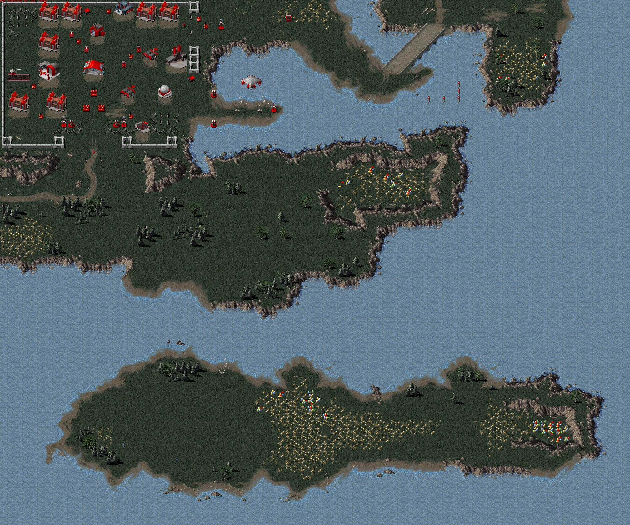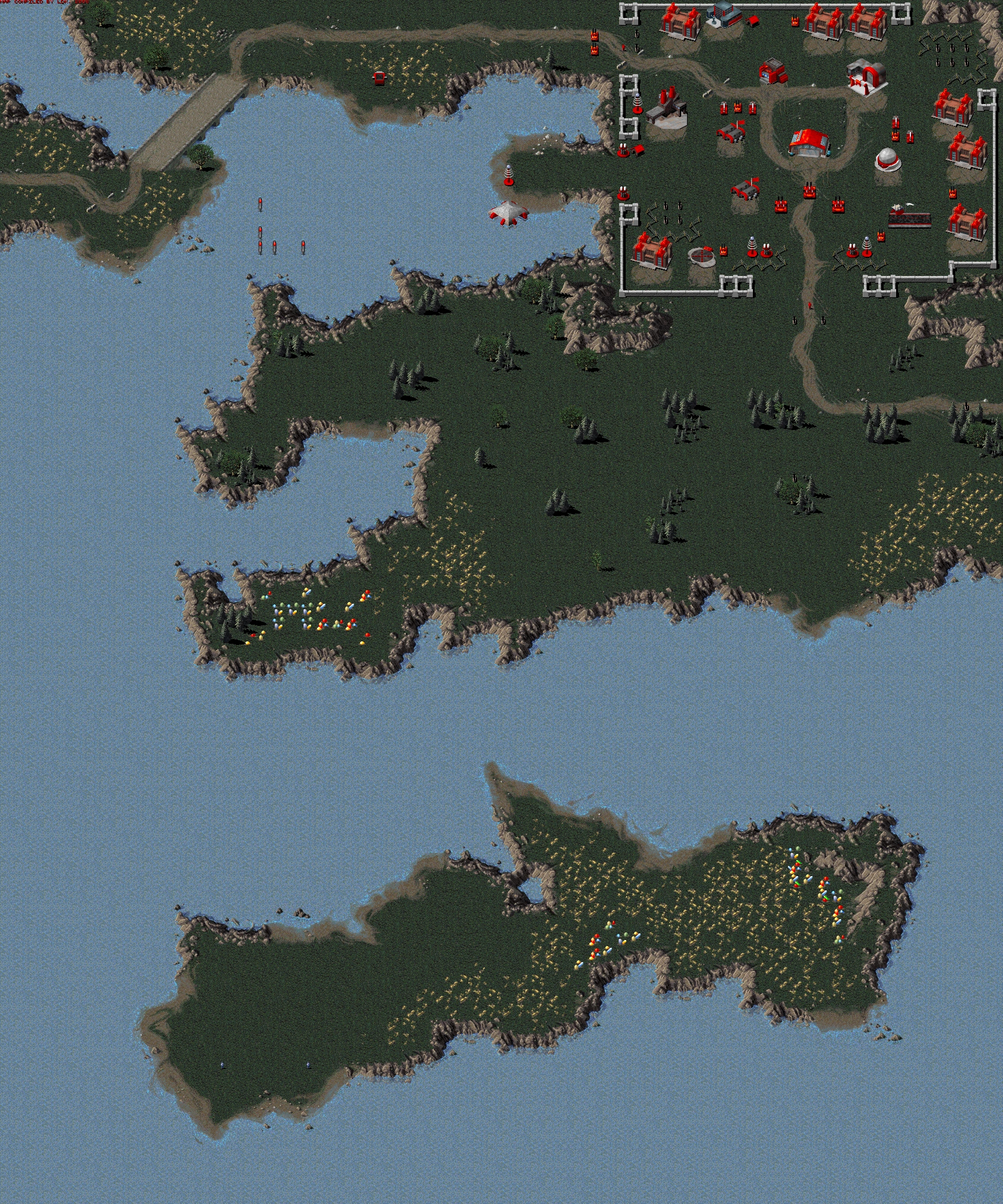 The good news is the Soviets are not aware of your presence and will be dormant until they spot one of your units. Once they do, you'll be attacked in the air, but it will be some time until they land troops on your island so be sure you eliminate their sub pen to prevent them from building transports.