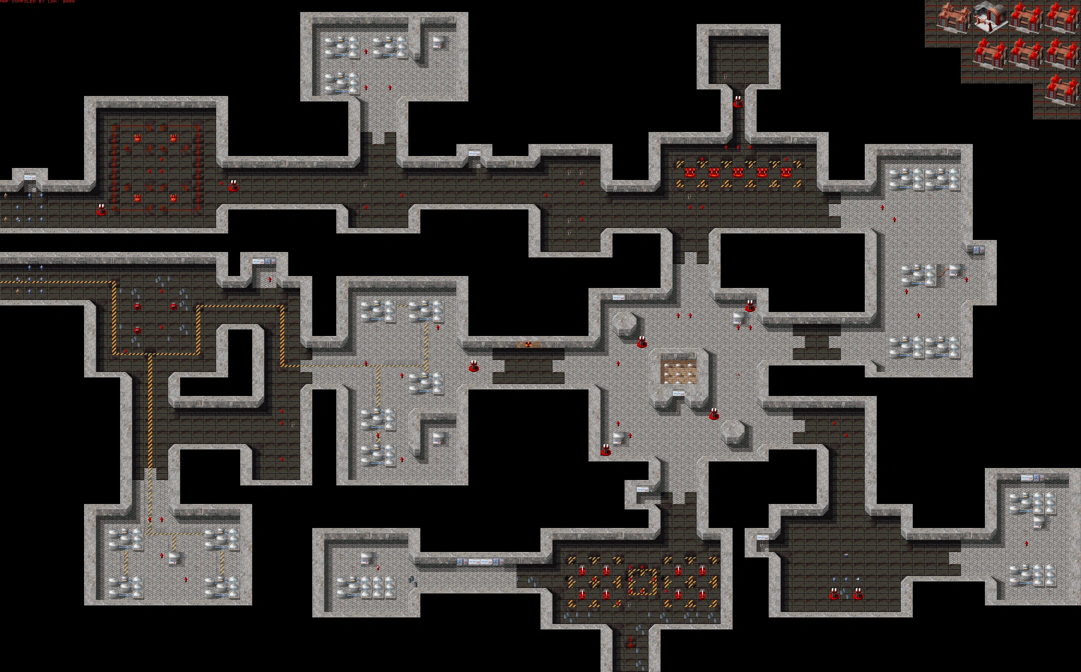 - The hidden buildings in the top right corner, similar to those for Core of the Matter and Down Under, are part of the mission’s mechanics, with a Construction Yard and Advanced Power Plant for the friendly Flame Tower that gets built in the V2 hangar (the buildings coloured brown) and more power plants (coloured red) for the enemy defensive buildings. These are obviously unreachable and not able to be seen without modding.