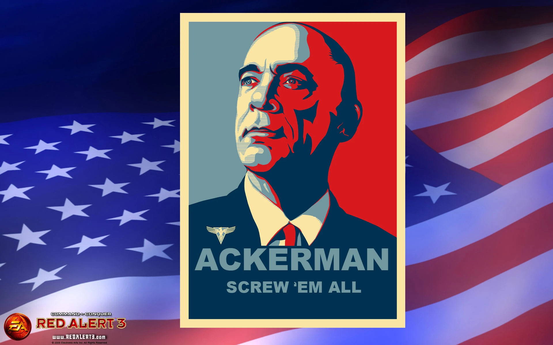 He is convinced the Soviet Union hates everything the United States stands for: freedom, liberty, the pursuit of happiness and apple pie. He ridicules the Soviets as "godless commies" and is willing to push the invading Soviet army from Europe (if not off the earth altogether). Ackerman is an enthusiastic and energetic leader, loyal to the American people. His brash and self-righteous political tactics are a stark contrast to the British Field Marshal Robert Bingham, who has calm and stoic mannerisms.