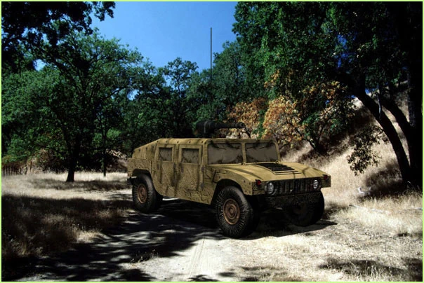 The Humvee is a lightly armored and armed vehicle, designed for scouting, transportation, and light fire support. Although ineffective against hard targets, the 7.62 mm M60 general purpose machine gun mounted on the roof provides a 360 degree area of fire, while the Humvee's speed allows it to quickly support advancing infantry squads, perform recon operations, and retreat.