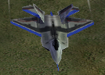 The King Raptor received engine modifications from the original version which allowed it to utilize a sturdier fuselage as well as carry more armament. This was considered an improvement on the original Raptor, which was perceived as thin-skinned.[4] King Raptors, much like the standard Raptor, were a relatively small fighter jet with twin engines, two vertical tails canted outward, and with a delta-wing. They were distinguished from regular Raptors by dark gray shading on the rudders, elevators, ailerons, and across the leading edge of the wing and fuselage.