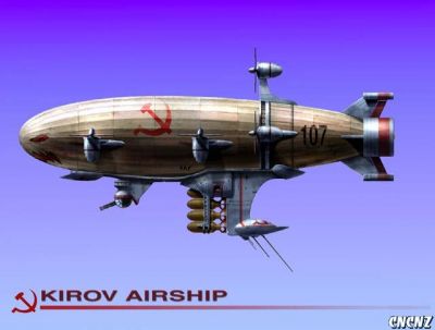 By far the heaviest and most destructive weapon in the Soviet arsenal, the Kirov can take down even the hardiest land units with just a few bombs. It is also the slowest vehicle in the USSR's employ. Thus, while it can take down an entire base on its own, it can be destroyed, as its low speed allows opponents to effectively target it with anti-aircraft weaponry against which the Kirov can't defend itself fast enough. Furthermore, it is the most expensive aircraft in the game. The Kirov can self-repair.