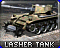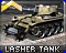 As the main battle tank of Yuri's Forces, the Lasher Tank has a narrow chassis, a turret armed with a light cannon, a completely decorative mine-sweeper-like cylinder in the front, and a bronze painting like many other Yuri's vehicles. As a light tank, it could not stand much punishment with a hit point equal to that of an Allied Grizzly. The Lasher, like most Yuri vehicles, could enter a tank bunker to supplement its weak armor. Due to its fairly low price, it was easy to mass produce and overwhelm the more expensive tanks of the Soviets, an advantage that was negated if their enemy was equipped with an Industrial Plant.