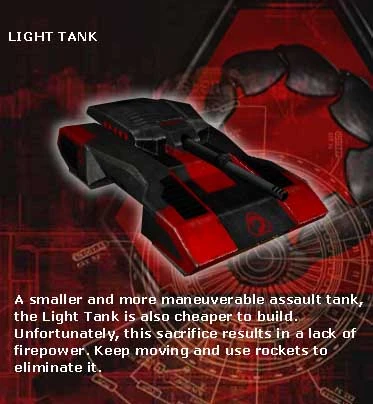 The light tank is the basic armoured vehicle of the Brotherhood of Nod in Renegade.