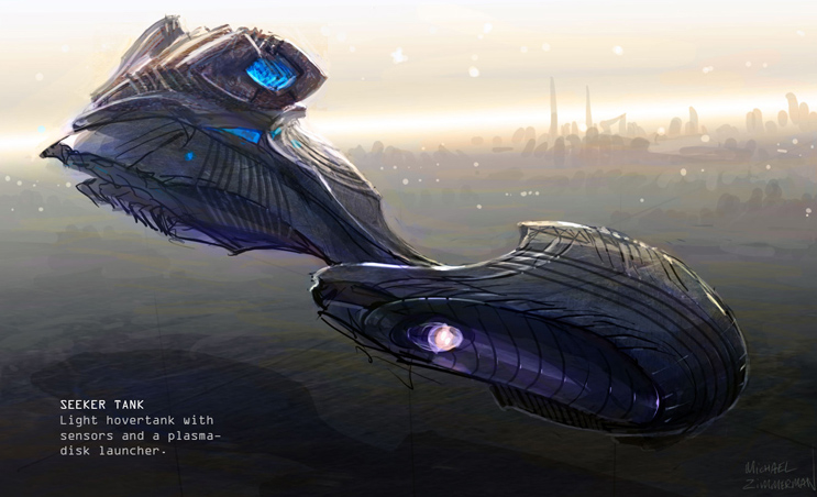 The Scrin often revealed themselves to human settlements with waves of forces spearheaded by small, agile hovercraft known as the Seeker. Apparently designed for scouting and light skirmishing, the Seeker is equipped with advanced scanners that can expose optical camouflage, as well as plasma disc launchers whose ionized, superheated target-seeking warheads prove effective against armor and aircraft[1].