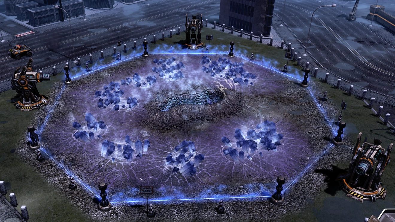 However, these attacks were merely diversions for the aliens' true agenda - the construction of massive Threshold towers in the Red Zones. Once finished, these towers would serve as both intergalactic gateways and planetary Tiberium extractors, extracting all Tiberium in a large radius before processing them and sending them to Ichor Hub. Eventually, all but one of the towers were destroyed by GDI forces, with the tower in Rome being the first one to fall. The last remaining tower, Threshold 19, was protected by both Nod and Scrin forces until its completion, at which point it became completely invulnerable.